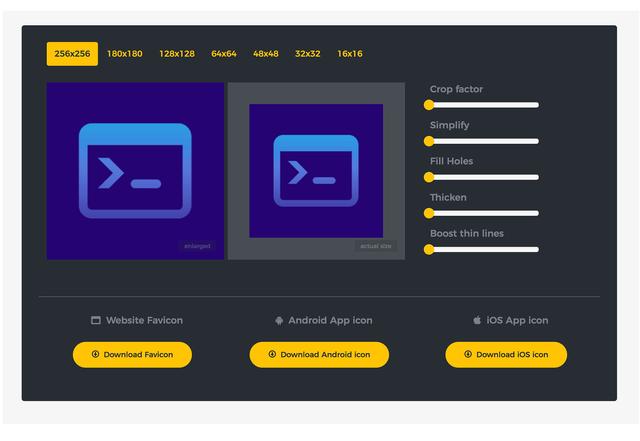 Logo Crunch 是一款LOGO制作工具,可以生成多個(gè)分辨率的LOGO,其中低分辨的版本能夠非常清晰。用來(lái)制作Favicon 效果會(huì)很不錯(cuò)。