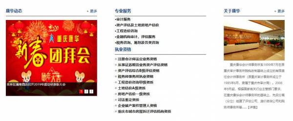 重慶康華所在恪守“獨立、客觀、公正”的基本原則下,切實履行“誠信、優(yōu)質(zhì)、高效”的服務方針,秉承 “服務第一、質(zhì)量第一、信譽第一”的執(zhí)業(yè)宗旨,堅持“百年老店”的執(zhí)業(yè)理念,一切以客戶需求為導向和出發(fā)點,利用自身服務能力的優(yōu)勢,在審計、資產(chǎn)評估及工程造價咨詢服務領域逐步形成了具有自身特色的個性化服務,主要特征是對客戶的需求進行專業(yè)分析,結合客戶的實際狀況,提供資產(chǎn)組合、優(yōu)化方案,用最優(yōu)的工作方案實現(xiàn)企業(yè)最大價值,用最優(yōu)的資產(chǎn)組合方式實現(xiàn)客戶的經(jīng)濟行為,從而全面提高重慶康華會計師事務所的服務能力,為客戶提供最優(yōu)質(zhì)的服務。