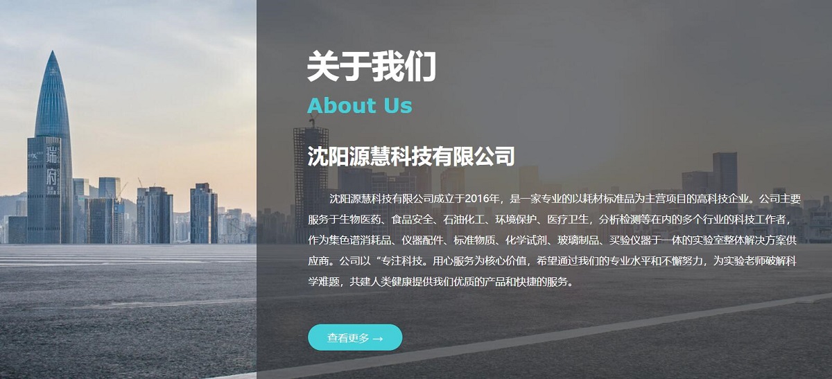 沈陽源慧科技有限公司成立于2016年,是一家專業(yè)的以耗材標(biāo)準(zhǔn)品為主營項(xiàng)目的高科技企業(yè)。公司主要服務(wù)于生物醫(yī)藥、食品安全、石油化工、環(huán)境保護(hù)、醫(yī)療衛(wèi)生,分析檢測等在內(nèi)的多個(gè)行業(yè)的科技工作者,作為集色譜消耗品、儀器配件、標(biāo)準(zhǔn)物質(zhì)、化學(xué)試劑、玻璃制品、買驗(yàn)儀器于一體的實(shí)驗(yàn)室整體解決方案供應(yīng)商。公司以“專注科技。用心服務(wù)為核心價(jià)值,希望通過我們的專業(yè)水平和不懈努力,為實(shí)驗(yàn)老師破解科學(xué)難題,共建人類健康提供我們優(yōu)質(zhì)的產(chǎn)品和快捷的服務(wù)。