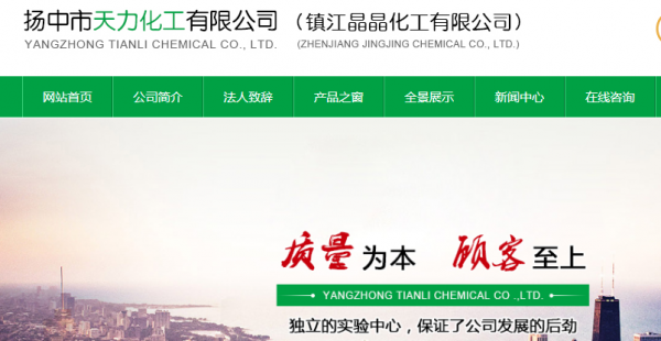 揚中市天力化工有限公司座落于市化工開發(fā)園區(qū)內(nèi),風景秀麗的揚子江畔、黃金水道從腳步下流過,東連 揚中大道、直通揚中二橋,水陸交通便利。公司成立于千禧之年,新興企業(yè)充滿活力,企業(yè)決策層十分注重引進技術(shù)及人才,同時依靠自身力量,大力開發(fā)精細化學新品種,發(fā)展勢頭較為喜人。目前,企業(yè)擁有120多員工,專業(yè)技術(shù)人員20多人產(chǎn)品擁有三大系列、二十多個品種。