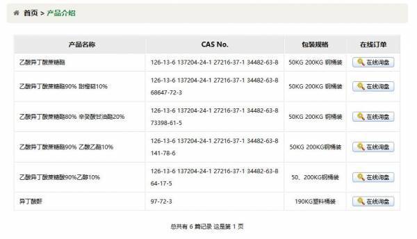 江西天*香料有限公司選用我司企業(yè)寵物用品網(wǎng)站案例,其網(wǎng)站建設的特點是異丁酸酐,乙酸異丁酸蔗糖酯,辛葵酸甘油酯,二乙酸六異丁酸蔗糖酯,SAIB,天奕香料。用很合適的展示方式、展示效果、站點框架,把客戶及其用戶很關心的問題突出表現(xiàn);并以簡潔明朗的設計風格,清晰展現(xiàn)公司水平實力,確保一秒抓住目標用戶眼球,給用戶留下良好的第一印象。江西天*香料有限公司成立于2011年,是經(jīng)撫州市市場監(jiān)督管理局審核的有資質的公司,其統(tǒng)一社會信用代碼:91361**7571185942G。公司地址:江西省撫州市金溪工業(yè)園C區(qū)檀湖路。