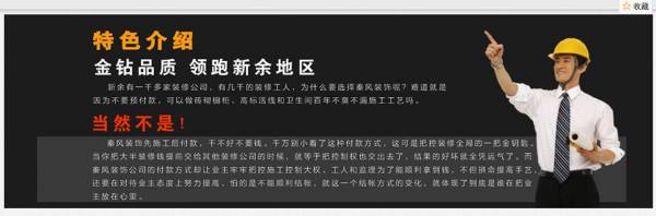新余秦*裝飾公司選用我司企業(yè)裝飾設(shè)計行業(yè)的網(wǎng)站優(yōu)化產(chǎn)品,其SEO關(guān)鍵詞有 新余裝修,裝修,新余裝修公司,新余裝修設(shè)計,新余裝修網(wǎng),新余秦風(fēng)裝飾。其特點是用很合適的展示方式、展示效果、站點框架,把客戶及其用戶很關(guān)心的問題突出表現(xiàn);并以簡潔明朗的設(shè)計風(fēng)格,清晰展現(xiàn)公司水平實力,確保一秒抓住目標(biāo)用戶眼球,給用戶留下良好的第一印象。新余秦*裝飾公司成立于2015年,是經(jīng)新余市市場監(jiān)督管理局審核的有資質(zhì)的公司,其統(tǒng)一社會信用代碼:913605023276***09K 。公司地址:新余市站前西路延伸段陽光365正大門對面(盛景苑3棟2單元301室)。