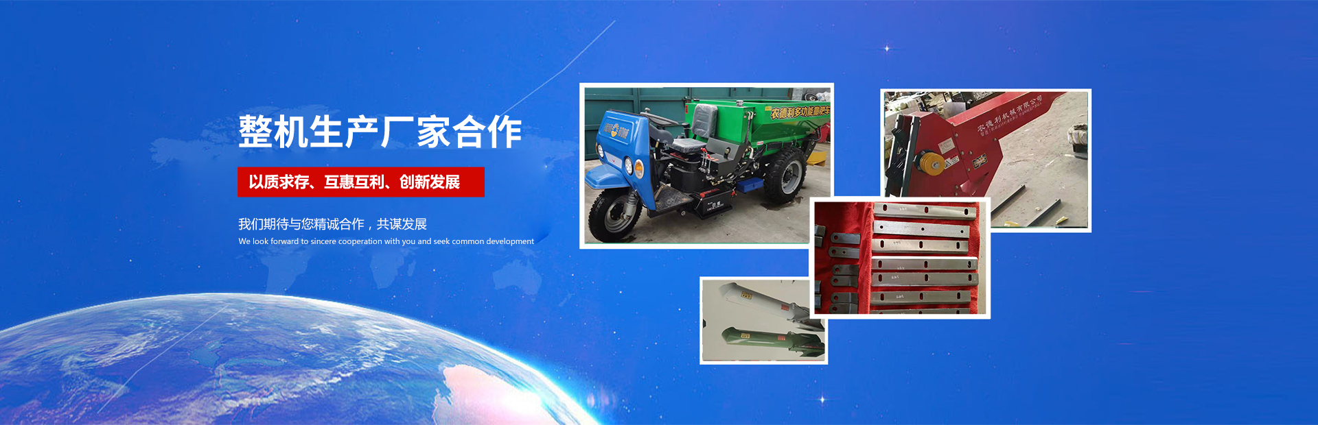本公司主要產(chǎn)品:玉米秸稈還田機(jī)刀片,玉米收前切刀,撒肥車,小麥秸稈切碎機(jī),卸糧筒,如今我們與多個整機(jī)生產(chǎn)廠家合作,銷量遍布全國。